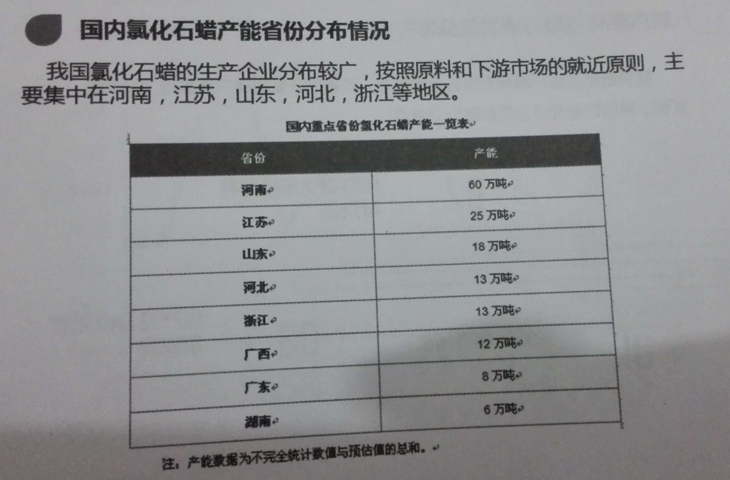 氯化石蠟行業(yè)供需產(chǎn)能省份分布情況