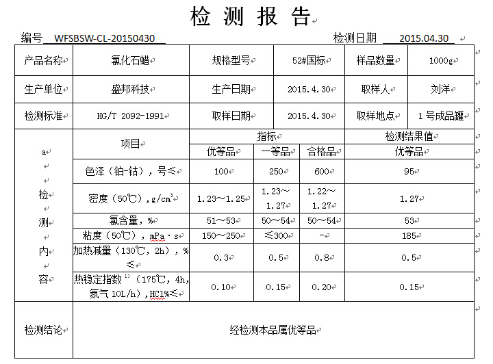盛邦科技氯化石蠟52#產品無色透明,具有良好的增塑性和阻燃性,采用國內優(yōu)質的蠟油為原料,先進的化學工藝設備,優(yōu)良的配方,產品性能達到國內行業(yè)領先水平。